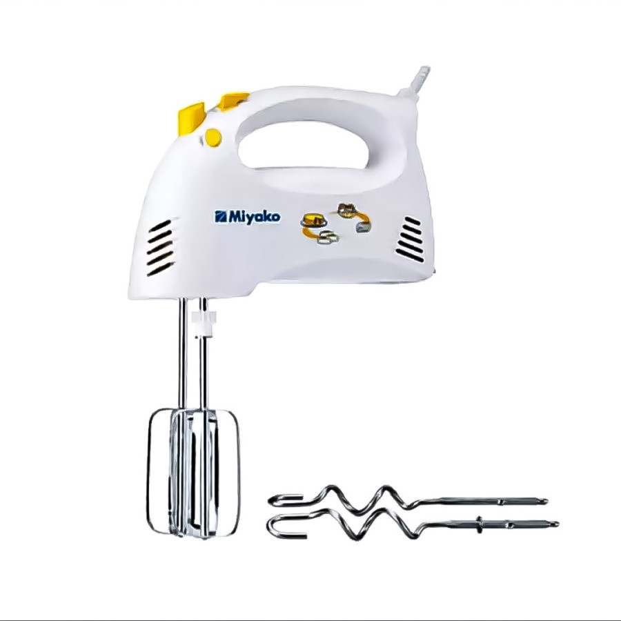 Bahan plastik, 2 pengaduk stainless steel, 5 kecepatan, daya 190W