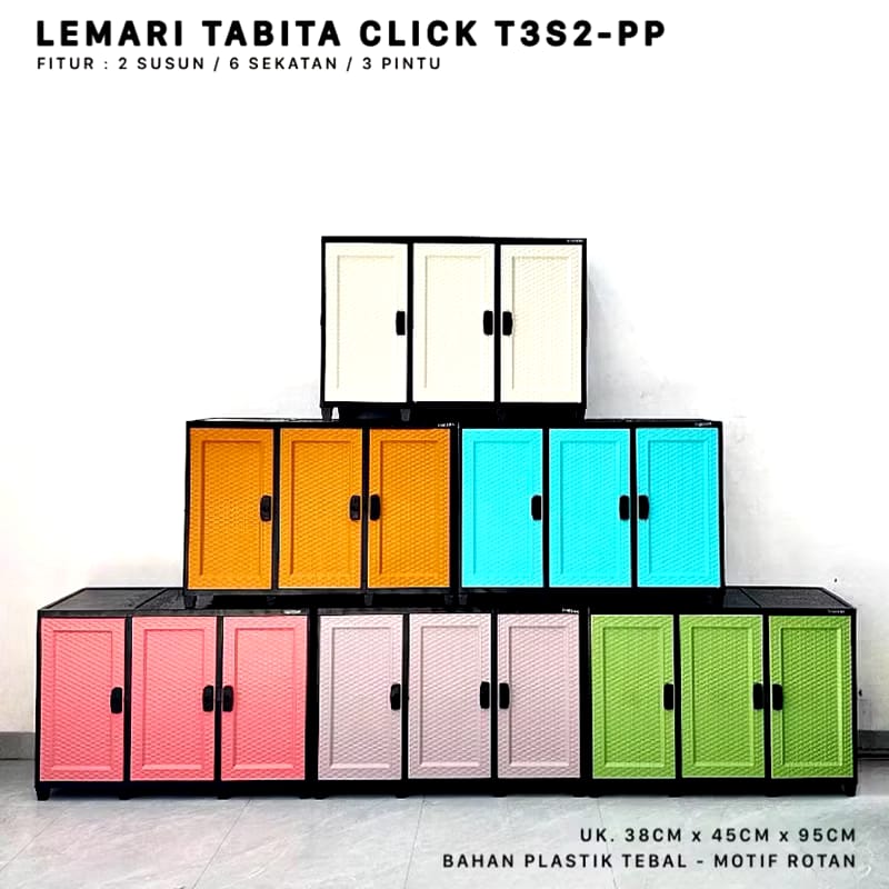 2 susun, 3 pintu, ukuran: 38 x 70 x 95 cm, warna: random (biru, ungu, hijau, putih, dan pink)